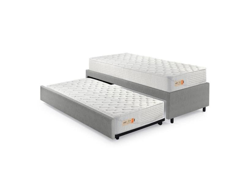 Bicama Box Solteiro Courino Linho Cinza Com Dois Colchões Molas Ensacadas Ecoline D33 Ecoflex