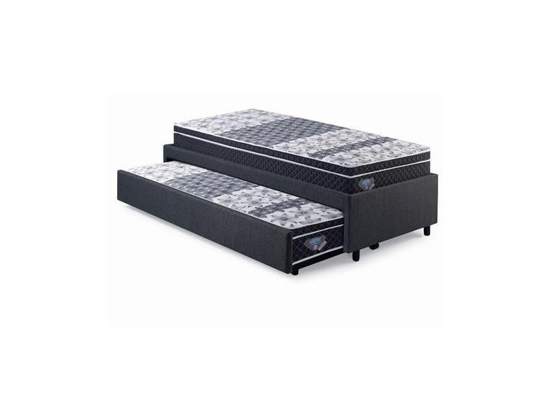 Bicama Box Solteiro Linho Cinza Com 2 Colchões Gransleep Verticoil Eco