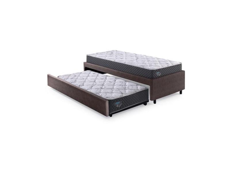 Bicama Box Solteiro Marrom 88x188 com Dois Colchões Adapto Molas Ensac