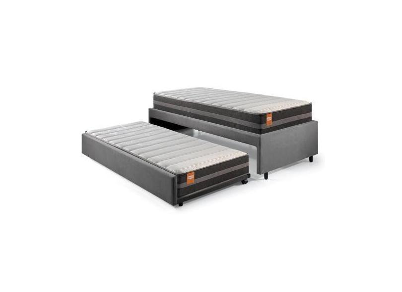 Bicama Box Solteiro Suede Cinza 88X188 Com Colchão Bogotá Molas Ultral