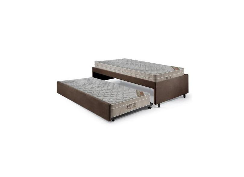 Bicama Box Solteiro Suede Marrom 88x188 Com Dois Colchões Airtech Mola