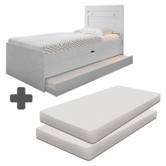 Bicama Com Baú Solteiro E 2 Colchões Larissa Branco Framar
