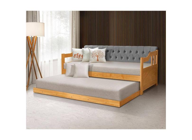 Bicama Dublin Estofado Capitonê Veludo Cinza Madeira Maciça com Cama Auxiliar 2 Colchões - Imbuia