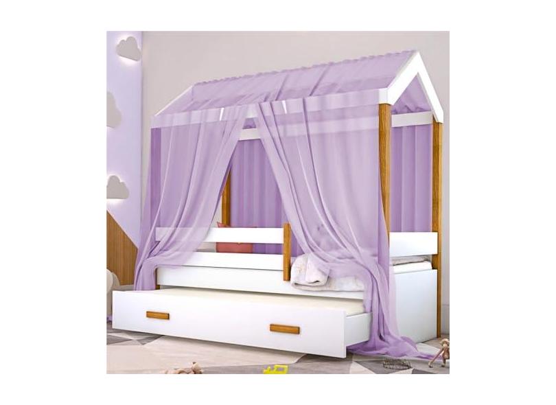 Bicama Montessori Exclusiv com Colchão e Voal Lilás