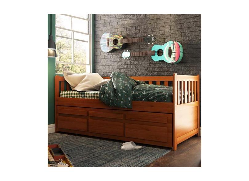 Bicama Reta Solteiro Castanho Claro 3 Gavetas Madeira Pinus - Saraiva