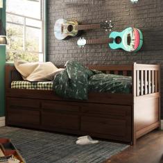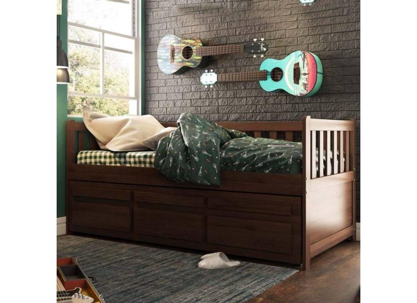 Bicama Reta Solteiro Castanho Escuro 3 Gavetas Madeira Pinus - Saraiva