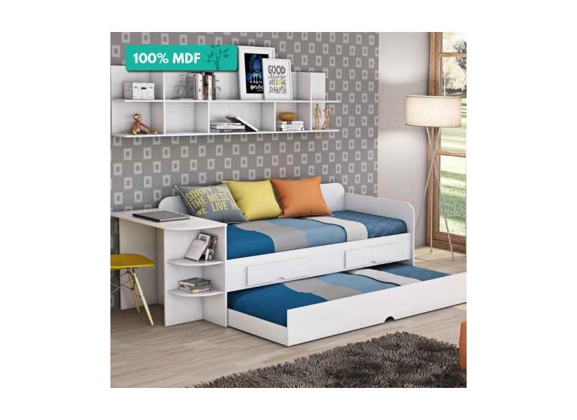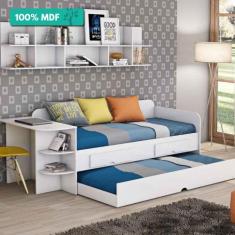 Bicama Sofá 2 Gavetas 100% Mdf Escrivaninha Lateral Helena Cimol Branc