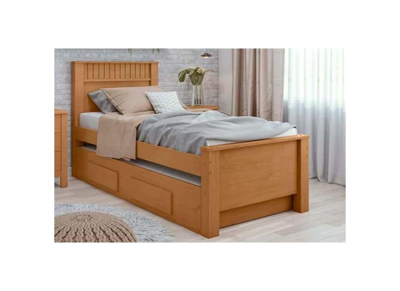 Bicama Solteiro Athenas C/ 2 Gavetas E Cama Auxiliar Amendoa Clean - Lopas
