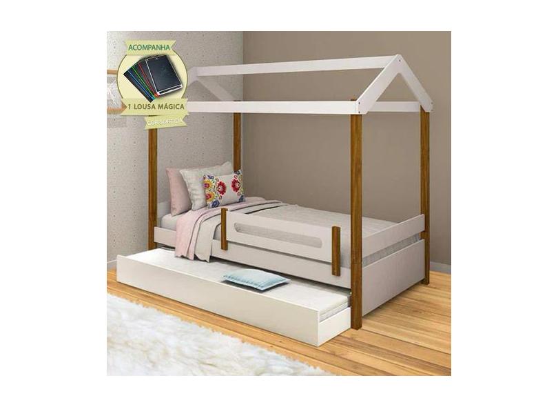 Bicama Solteiro Montessoriana Eliz Com Grade De Proteção Branco/Mel In