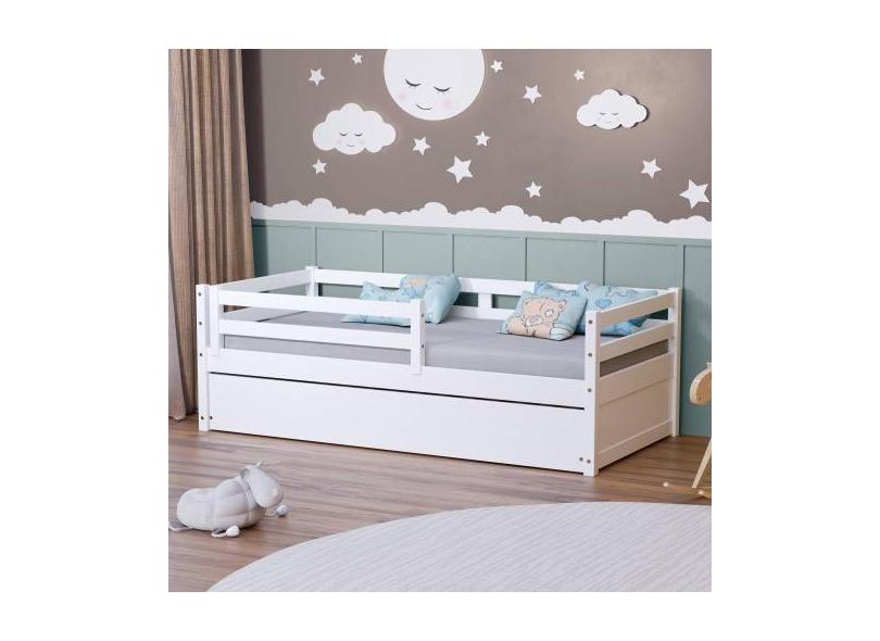 Bicama Solteiro Slim com Grade de Proteção Madeira Maciça Branco Housi