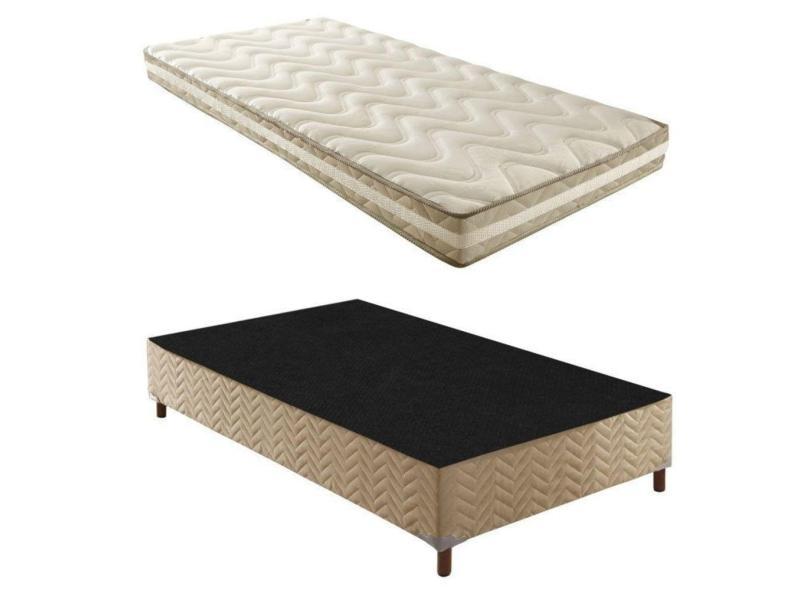 Box Solteiro Júlia 42x88x188cm com Colchão Solteiro Unique D33 Plus Duoface 14x88x188cm Rustico Bege
