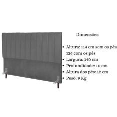 Cabeceira Cama Box Casal 140 Cm Carla Suede Cinza E Frame