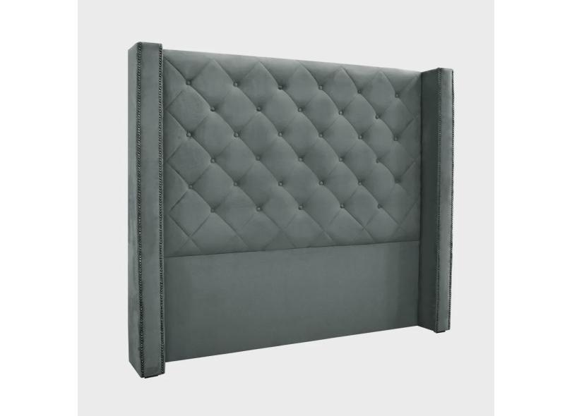 Cabeceira Cama Box Solteiro 90 cm Vicenza Veludo Cinza S04 - D'Rossi