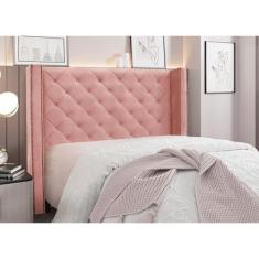 Cabeceira Cama Box Solteiro 90 cm Vicenza Veludo Rosa S04 - D'Rossi