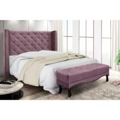 Cabeceira Cama Box Solteiro 90cm e Recamier Vicenza Veludo Uva S04 - D`Rossi