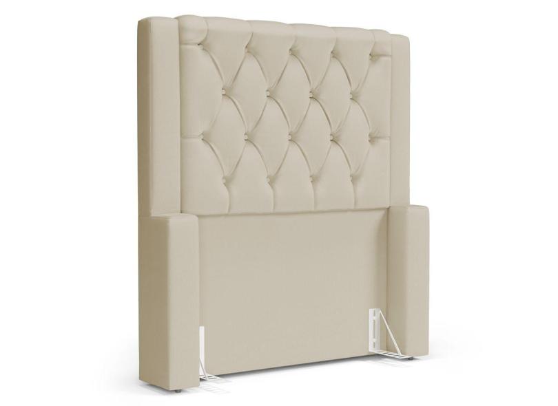 Cabeceira Cama Box Solteiro Atena 110cm Capitonê com Frame Suede Bege Claro - Desk Design