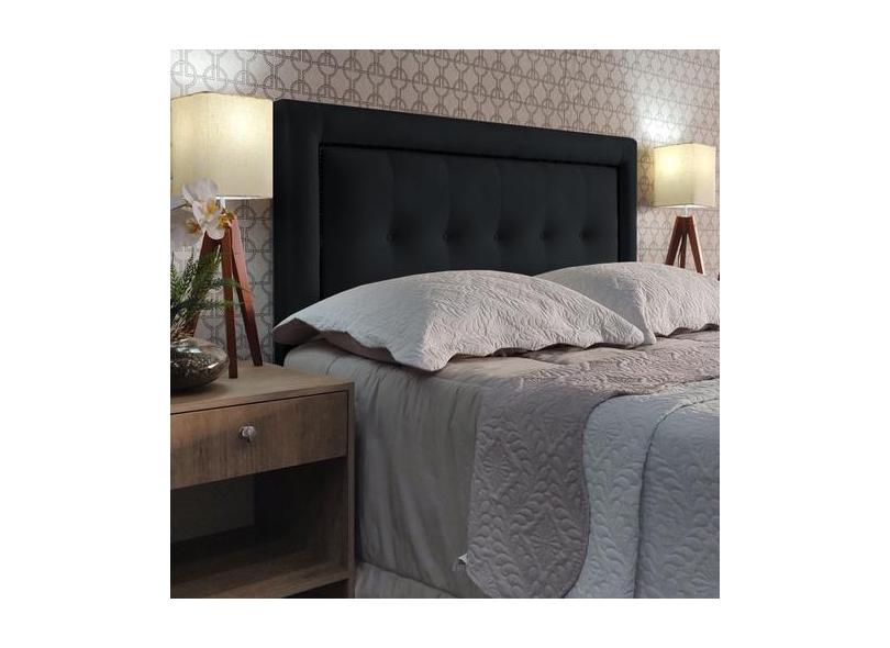 Cabeceira Cama Casal Veneza 05 Diamond Suede Preto 120 Rbl