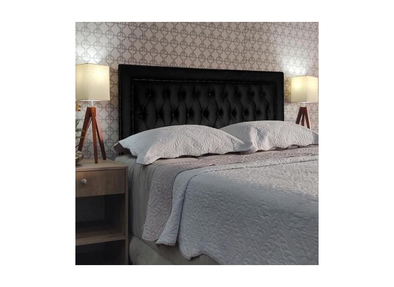 Cabeceira Cama Queen Capitonê Sophia Diamond 2 Suede Preto 120 Rbl