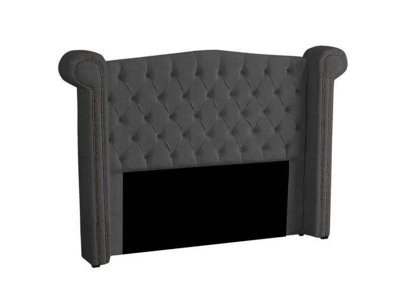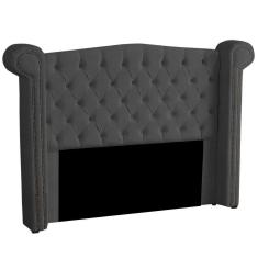 Cabeceira Casal Estofada Para Cama Box Ayla Veludo Cinza Escuro