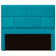 Cabeceira Casal Estofada Para Cama Box Jade Veludo Cor Azul Claro