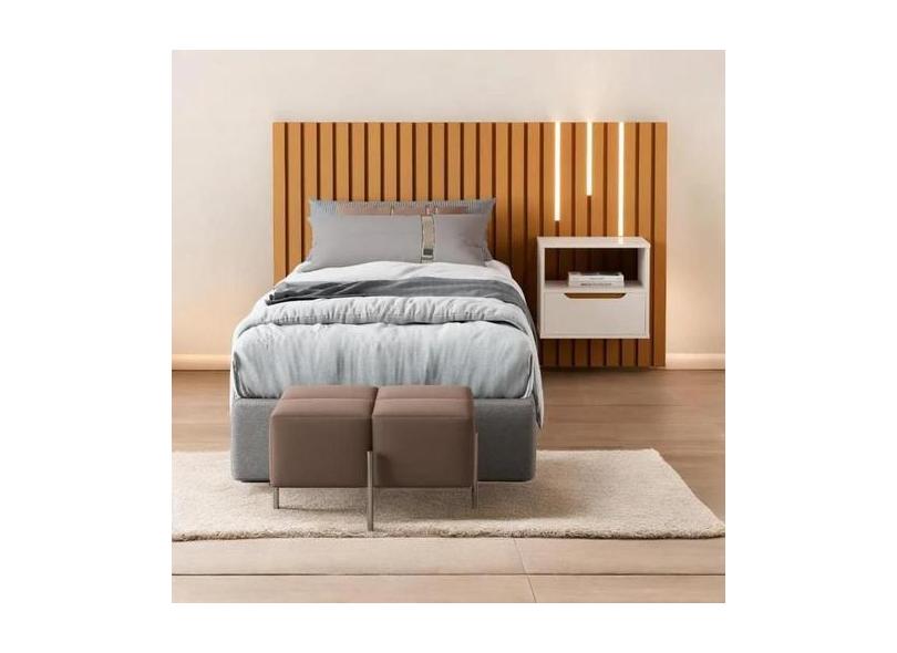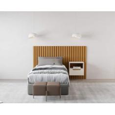 Cabeceira Ripado Para Cama De Solteiro Maracá Nature Com Mesa De Cabec