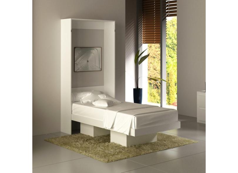 Cama Articulada Vertical De Parede Compacta Solteiro Quarto 2 Nichos Prateleiras Multiuso Branco