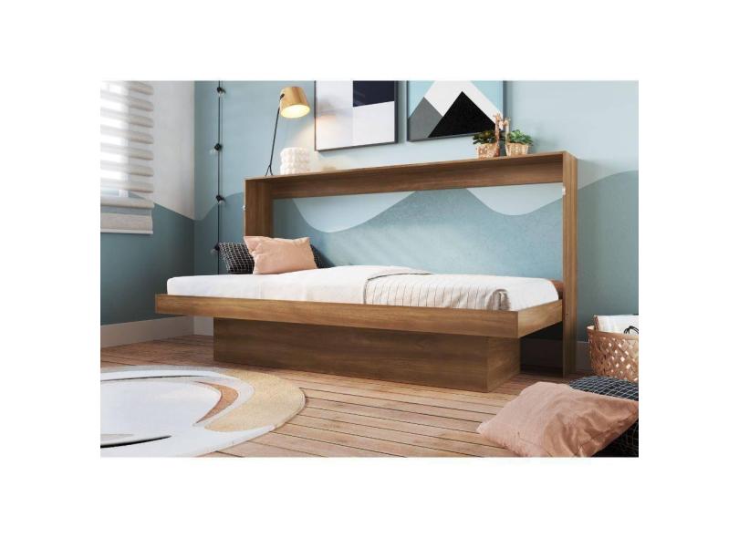 Cama Articulável Horizontal Solteiro Com Estação De Trabalho Nogal
