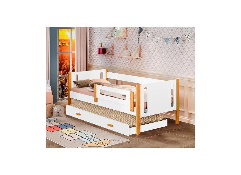 Cama Babá Infantil Mirela Com Cama Auxiliar Branco/Mel Com Grade De Pr