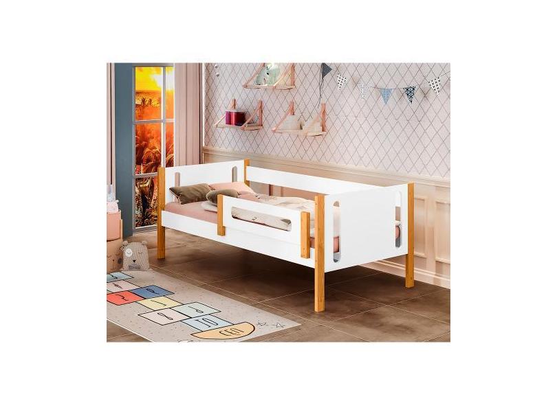 Cama Babá Infantil Mirela Com Grade De Proteção Móveis - Branco/Mel -