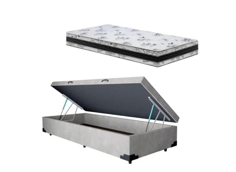 O menor preço encontrado no Brasil para Cama Base Box Baú Solteiro Super Confort Suede Cinza + Colchão Solteiro Super Confort D33 24x88x188 atualmente é R$ 850,00.