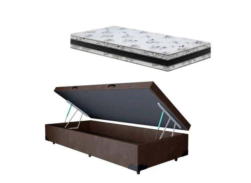 O menor preço encontrado no Brasil para Cama Base Box Baú Solteiro Super Confort Suede Marrom + Colchão Solteiro Super Confort D33 24x88x188 atualmente é R$ 765,00.