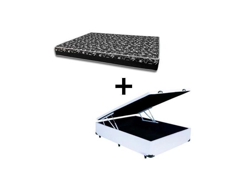 Cama Baú Box Viúva 128 - Tecido Sintético Branco Com Colchão Belize Be