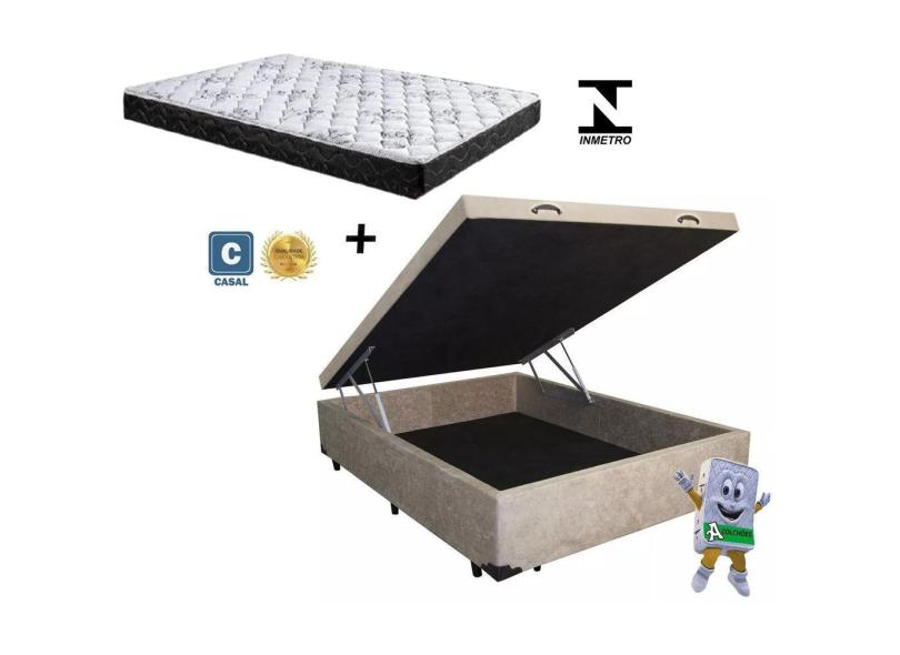 Cama Baú Casal Bege Suede + Colchão Espuma D23 138x188x10
