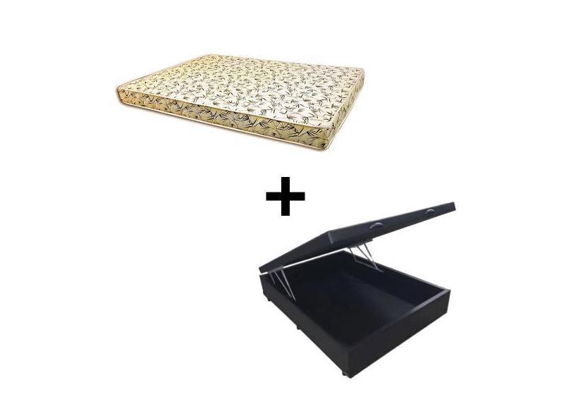 Cama Baú Viúva - Tecido Sintético Preto Com Colchão Austrália Bello Bo
