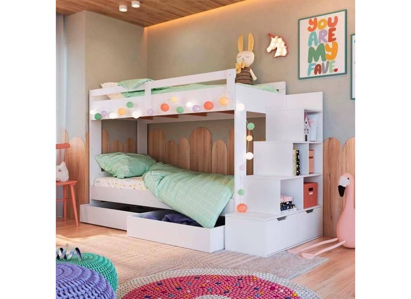 Cama Beliche Infantil Solteiro Com 05 Nichos E 02 Gavetões 231cm Branco Decker Shop Jm