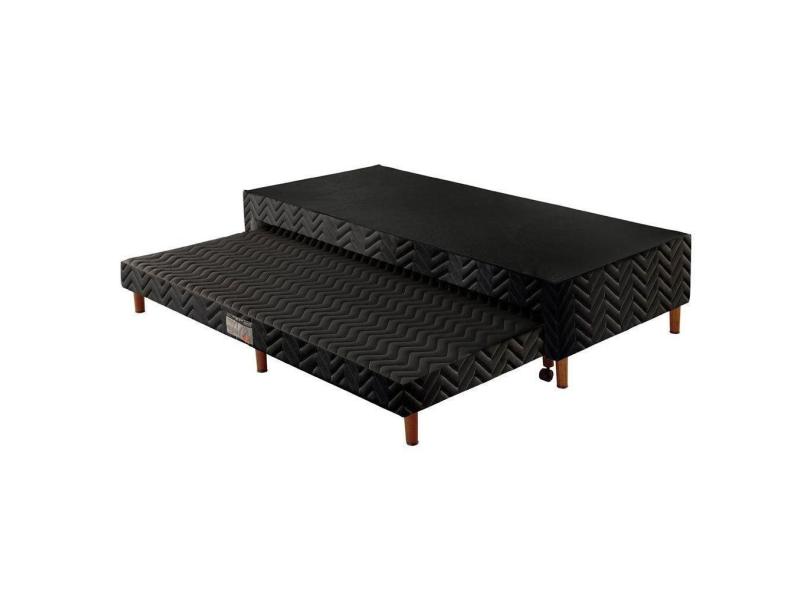 Cama Box Base C-auxiliar Solteiro Universal Tecido Bordado Black (88x188x30) - Paropas