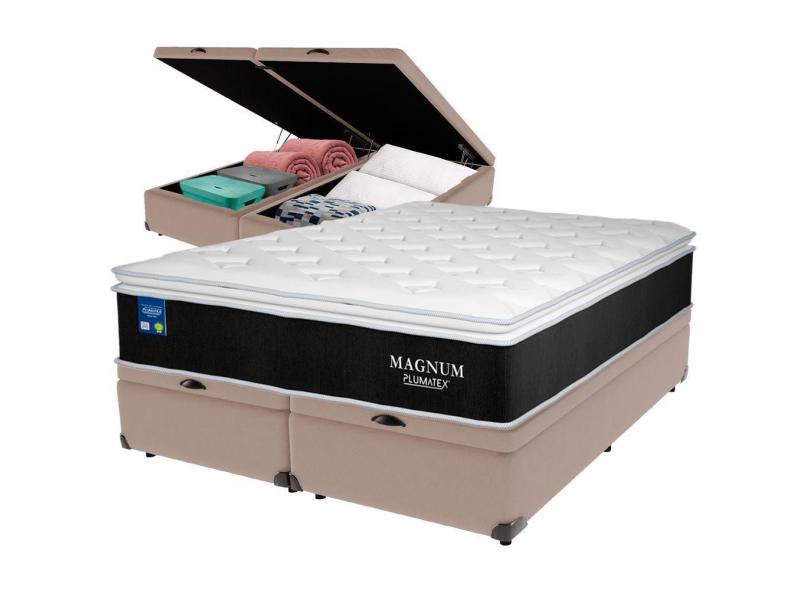 Cama Box Baú Bege E Colchão Magnum Molas Ensacadas King Plumatex