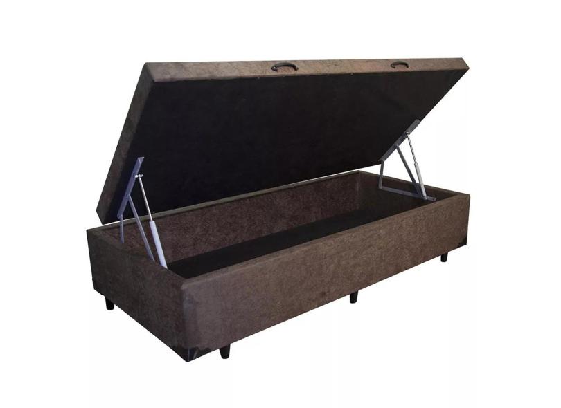 Cama Box Baú Blindado Solteiro HomeQueen Suede Marrom 41x78x188