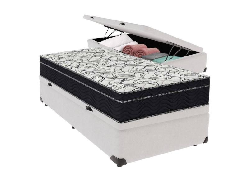 Cama Box Baú Branco E Colchão Airtech 150 Espuma D45 Solteiro Ortobom