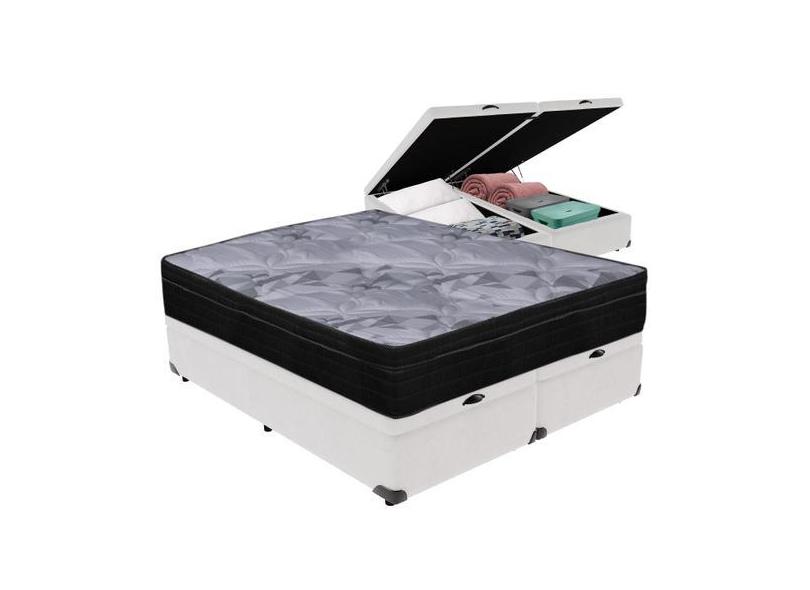 Cama Box Baú Branco e Colchão Airtech Pampa Molas ensacadas Queen Orto