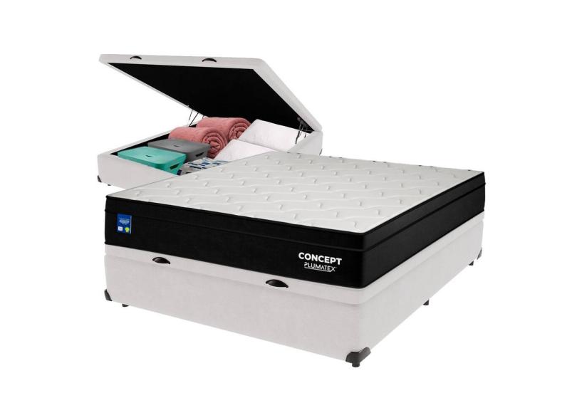O menor preço encontrado no Brasil para Cama Box Baú Branco e Colchão Casal Concept Molas Ensacadas Plumatex atualmente é R$ 1.724,79.