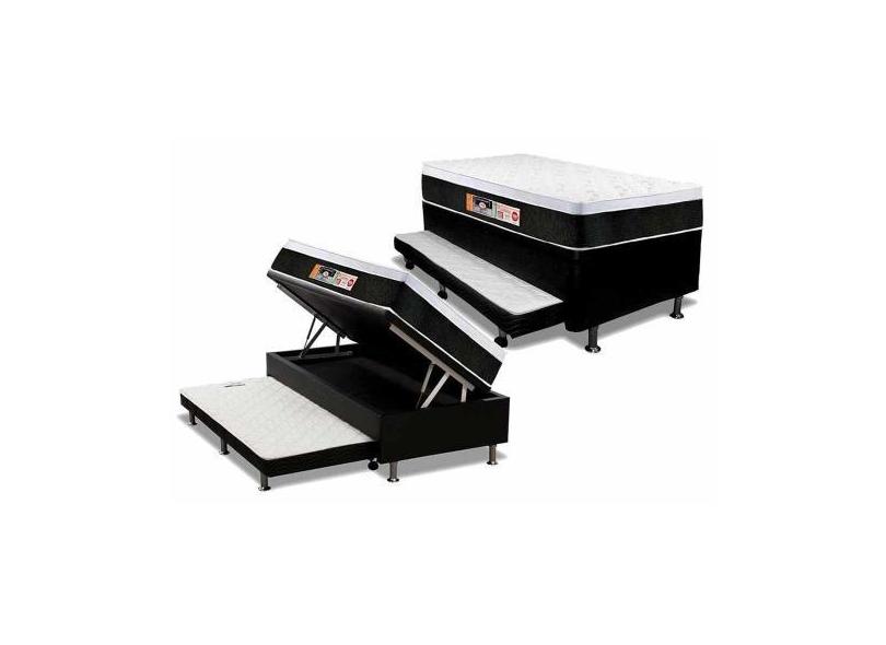 Cama Box Baú C/Auxiliar Solteiro: Colchão Espuma Castor D45 Black E Wh