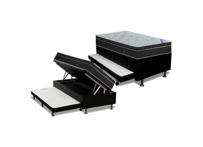 O menor preço encontrado no Brasil para Cama Box Baú c/Auxiliar Solteiro: Colchão Molas Ortobom Nanolastic Light + Base CRC Courano Black(88x188) atualmente é R$ 2.277,21.