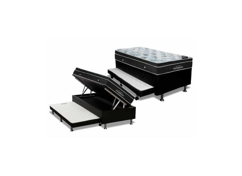 Cama Box Baú c/Auxiliar Solteiro: Colchão Molas Ortobom Nanolastic Ort
