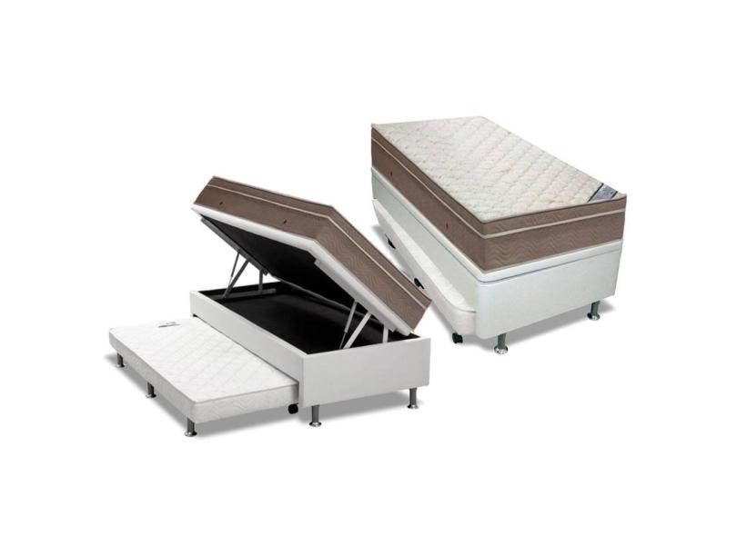Cama Box Baú c/Auxiliar Solteiro: Colchão Molas Ortobom SuperPocket Light + Base CRC Courano Branco(88x188)