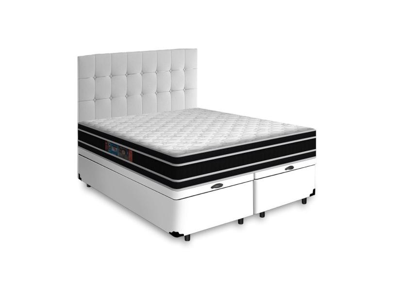 Cama Box Baú + Cabeceira Cassis e Colchão Queen - Castor - Black White D33 - 158x198x69cm Branco