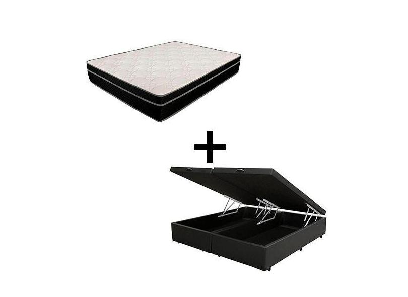 Cama Box Baú Casal 138 Bipartido - Tecido Sintético Preto Com Colchão