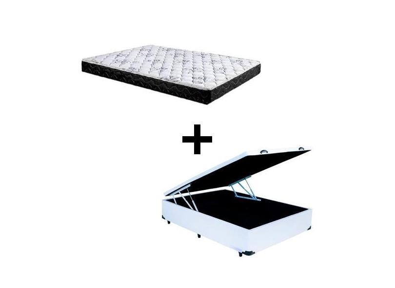 Cama Box Baú Casal 138 Sintético Branco Com Colchão Green Bello Box Es