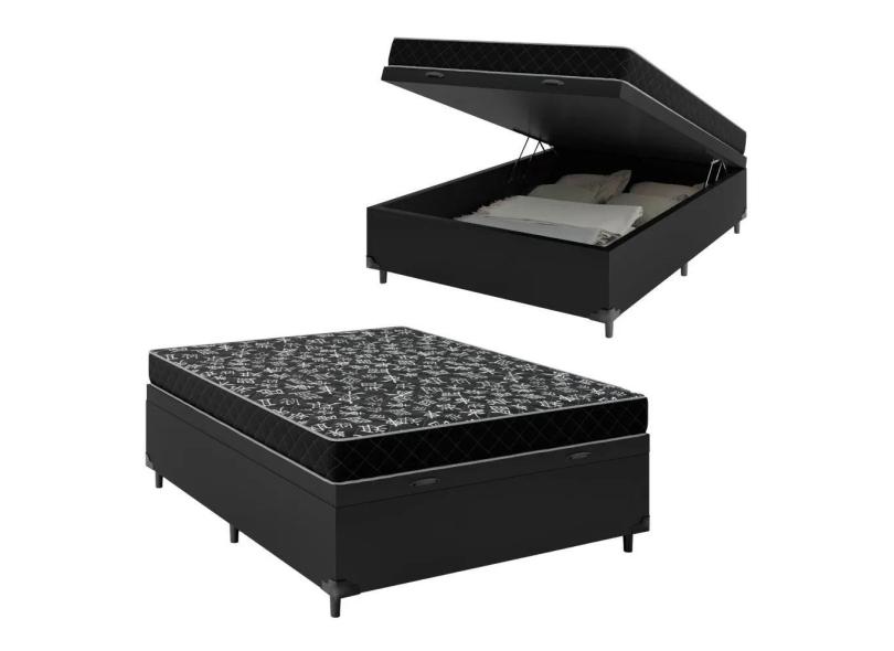 Cama Box Baú Casal 138 Sintético Preto com Colchão de Espuma D20 - Tampo Preto 12cm