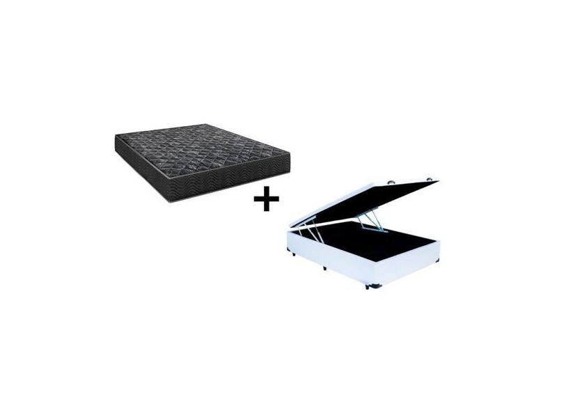 Cama Box Baú Casal 138 Tecido Sintético Branco Com Colchão Lisboa Espu